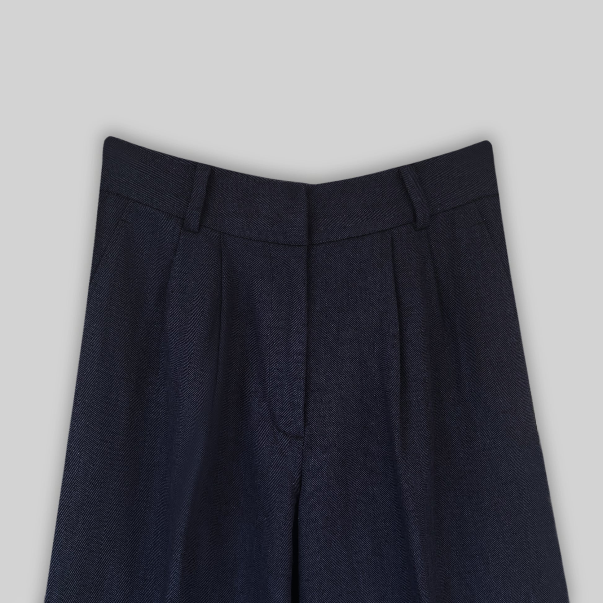 Linen Herringbone Pleated Pants